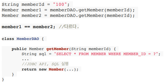즉, 같은 쿼리문을 날리면 data는 같지만 다른 객체 인스턴스가 생성됨