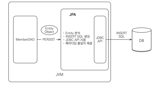 애플리케이션 입장에선 자바 컬렉션에 저장하듯이 JPA를 이용하면 됨